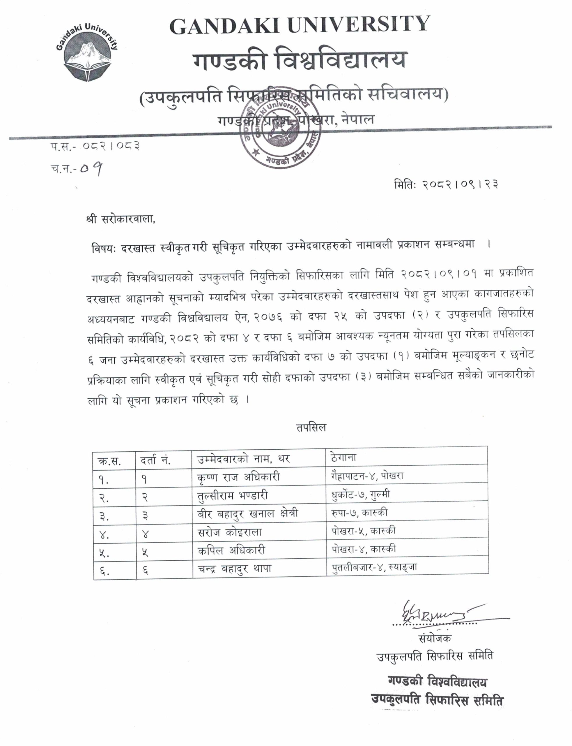 गण्डकी विश्वविद्यालयमा रिक्त रहेको उपकुलपति नियुक्तिका लागि नाम सिफारिस गर्न गठित उपकुलपति सिफारिस समितिको दरखास्त आह्वान सम्बन्धी सूचना