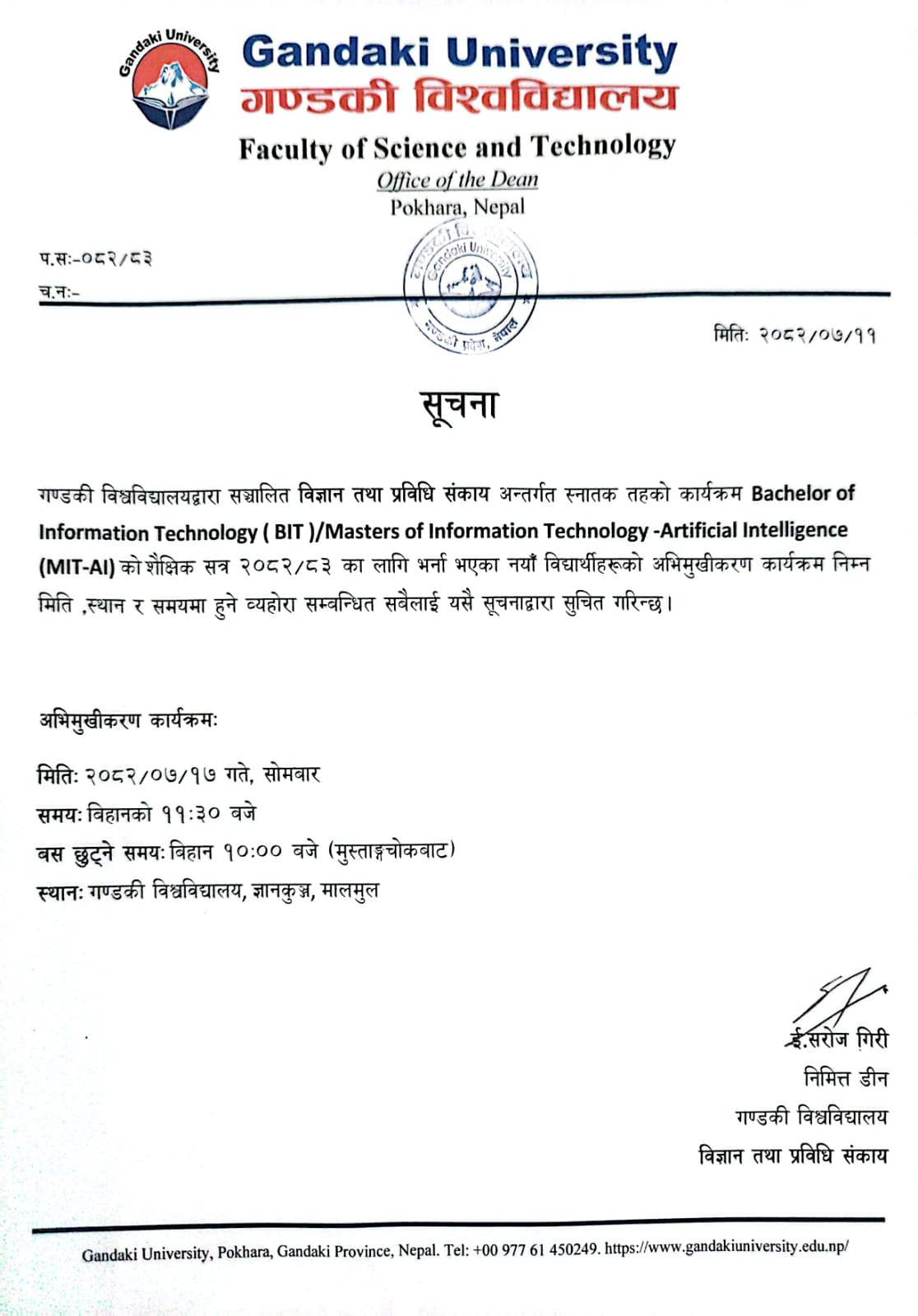 भर्ना सम्बन्धी जरुरी सूचना (BIT)